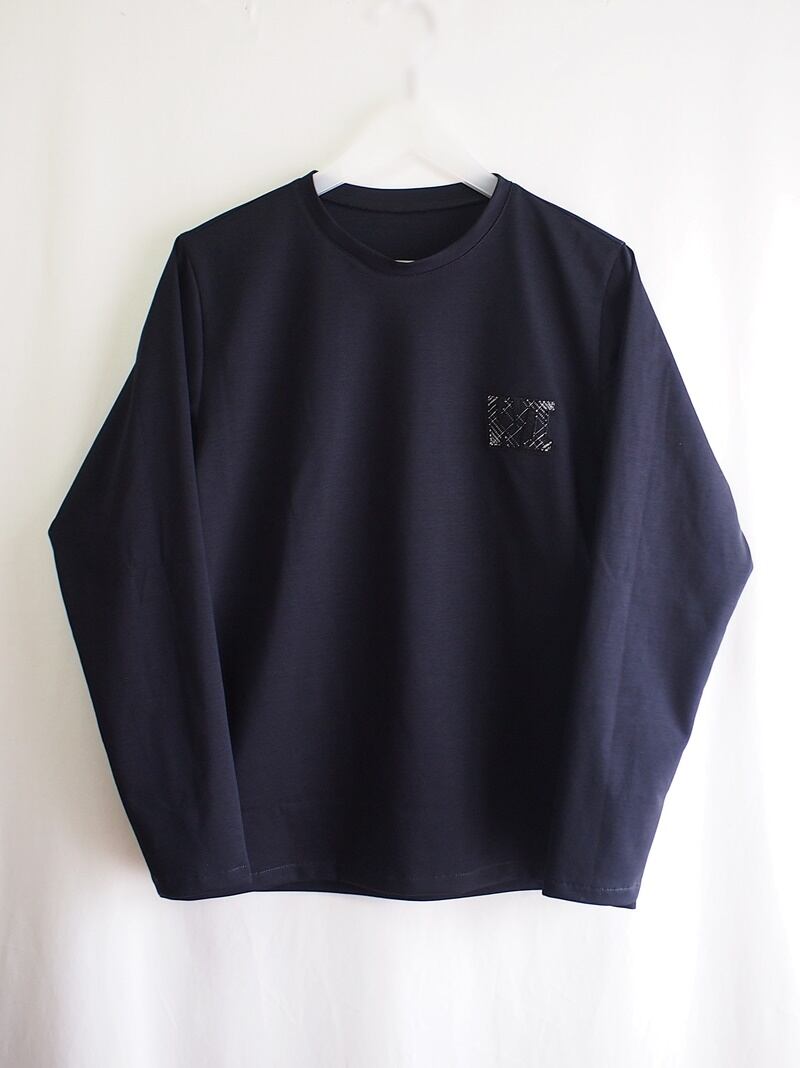 左胸に小さく控えめなWIロゴアップリケを施したシンプルなクルーネックのロングスリーブT
