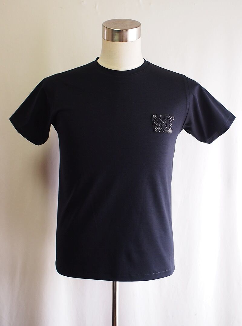 控えめに同系色のWIロゴアップリケを付けたショートスリーブTシャツ