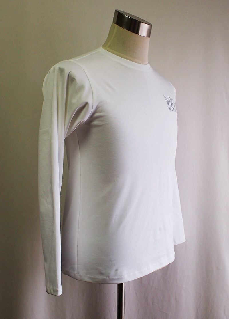 左胸に同系色で控えめなWIロゴアップリケの真っ白なロングスリーブT