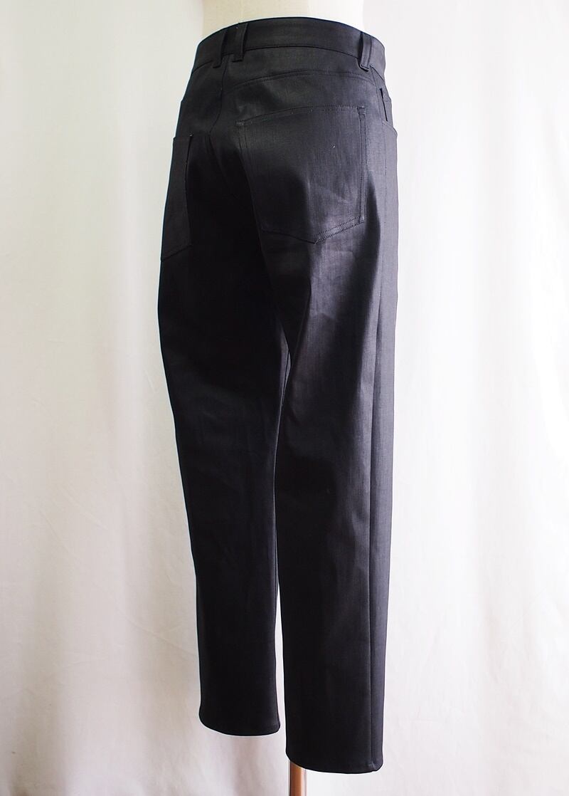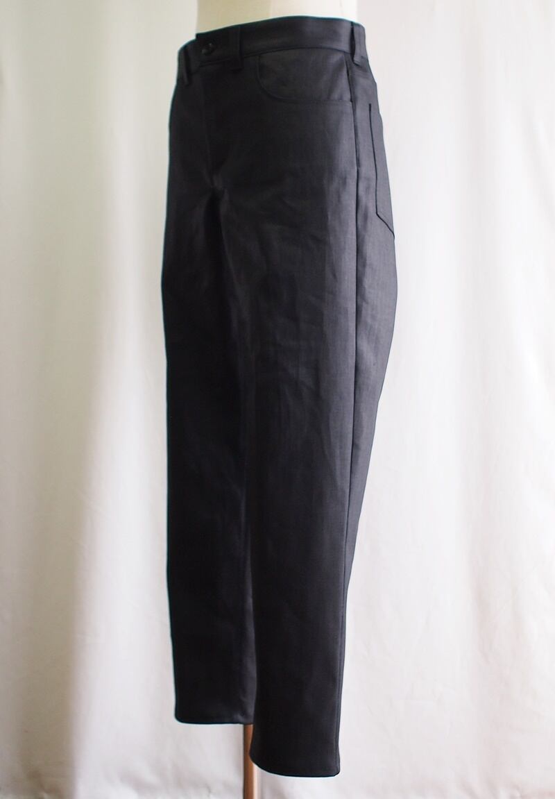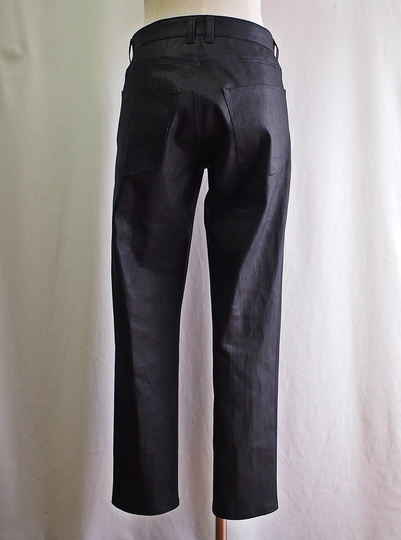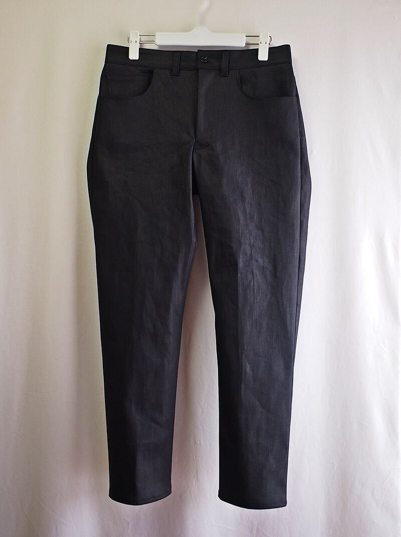 生地表面に黒い顔料を色付けしたストレッチデニムの5ポケットパンツ