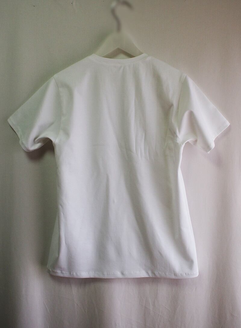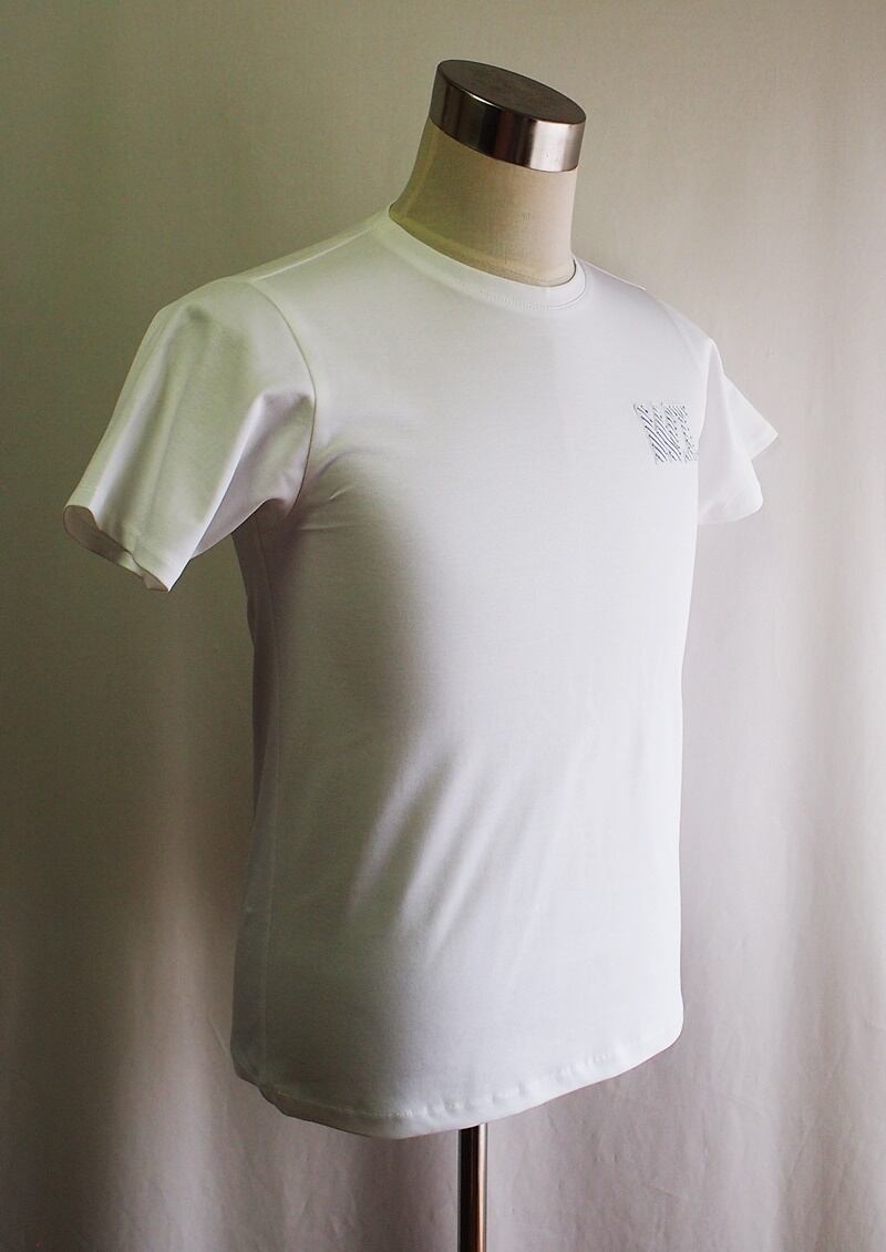 左胸に同系色で控えめなWIロゴアップリケの真っ白なショートスリーブT