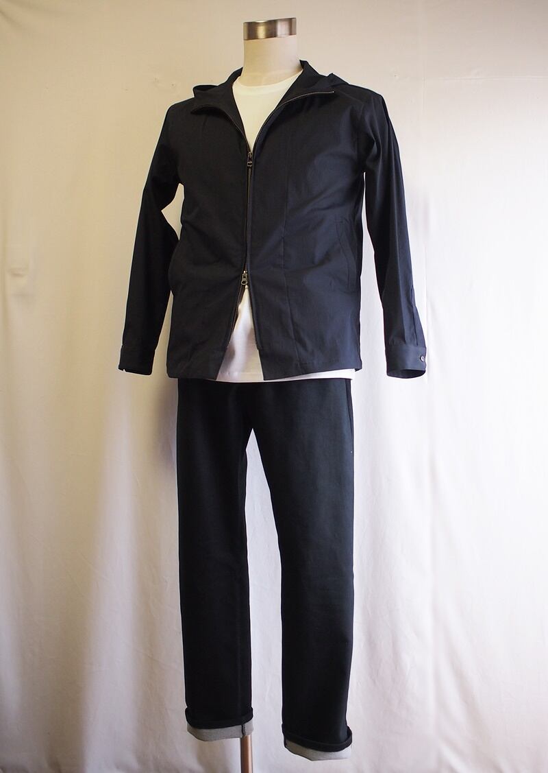 肩、袖ぐり、袖下から両脇など全てのシーム(接ぎ目)は地縫いして端ロック片倒し、袖口と裾は端ロックして二つ折りステッチ仕様