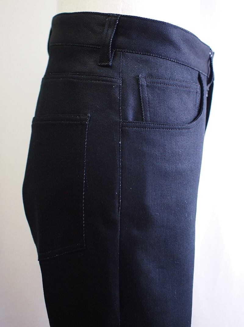 柔らかな風合いで真っ黒なソフトストレッチデニムの5ポケットパンツ
