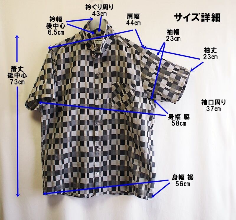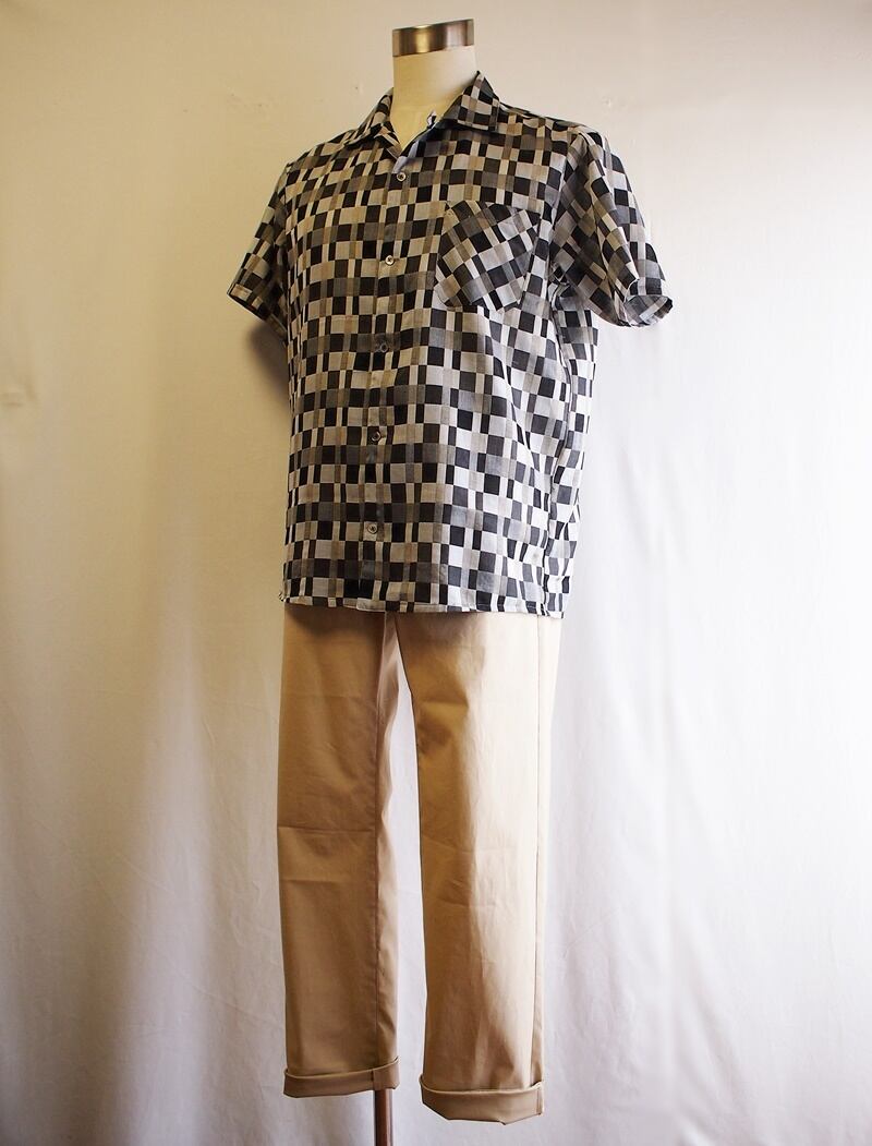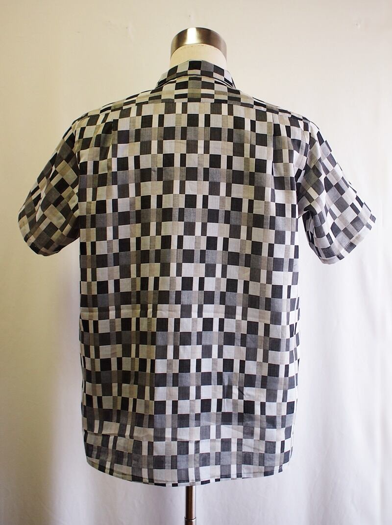 セール20%オフ!たった一つの…メンズ☆コットンシフォン☆モザイクブロックチェック☆オープンカラー☆ショートスリーブシャツ☆Lサイズ☆モノトーン