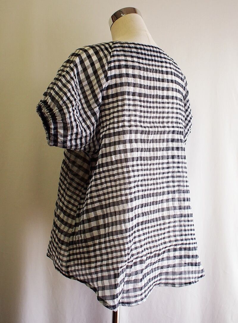 セール20%オフ!たった一つの…レディス★コットンボイル★パッカリングチェック★キーホールネック★スモックブラウス★フリーサイズ★ブラック&ホワイト