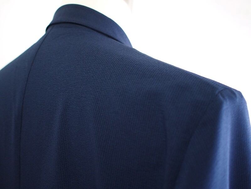 使用した生地はポリエステル100%のストレッチシアサッカー、石川県にある合成繊維メーカー「小松マテーレ(旧名:小松精練)」が製造