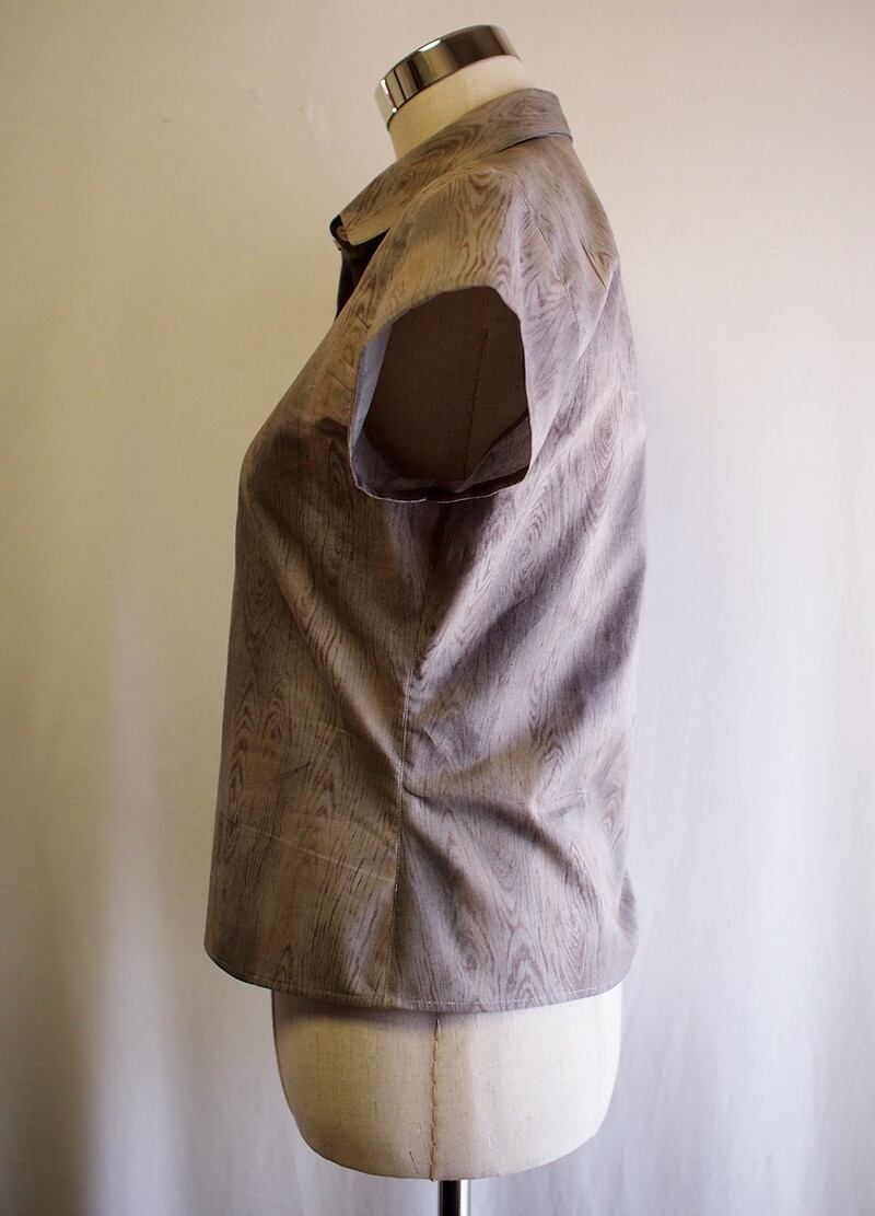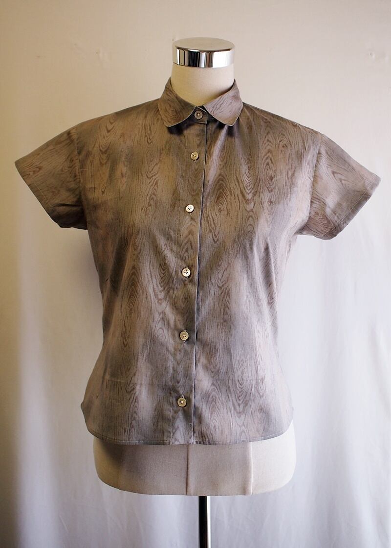独特な木目柄プリントで着丈短めなオーバーブラウス