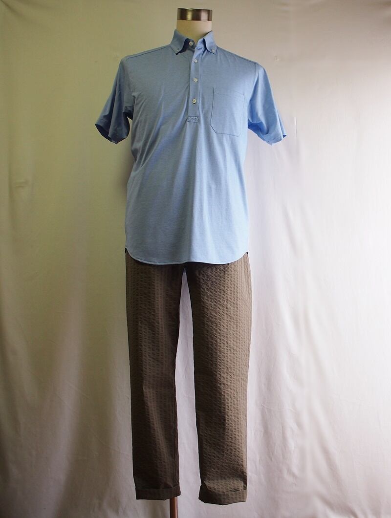 使用した生地は綿68%・ポリエステル32%のストレッチサッカー、タテ糸に綿、ヨコ糸にT400というストレッチ糸を使用