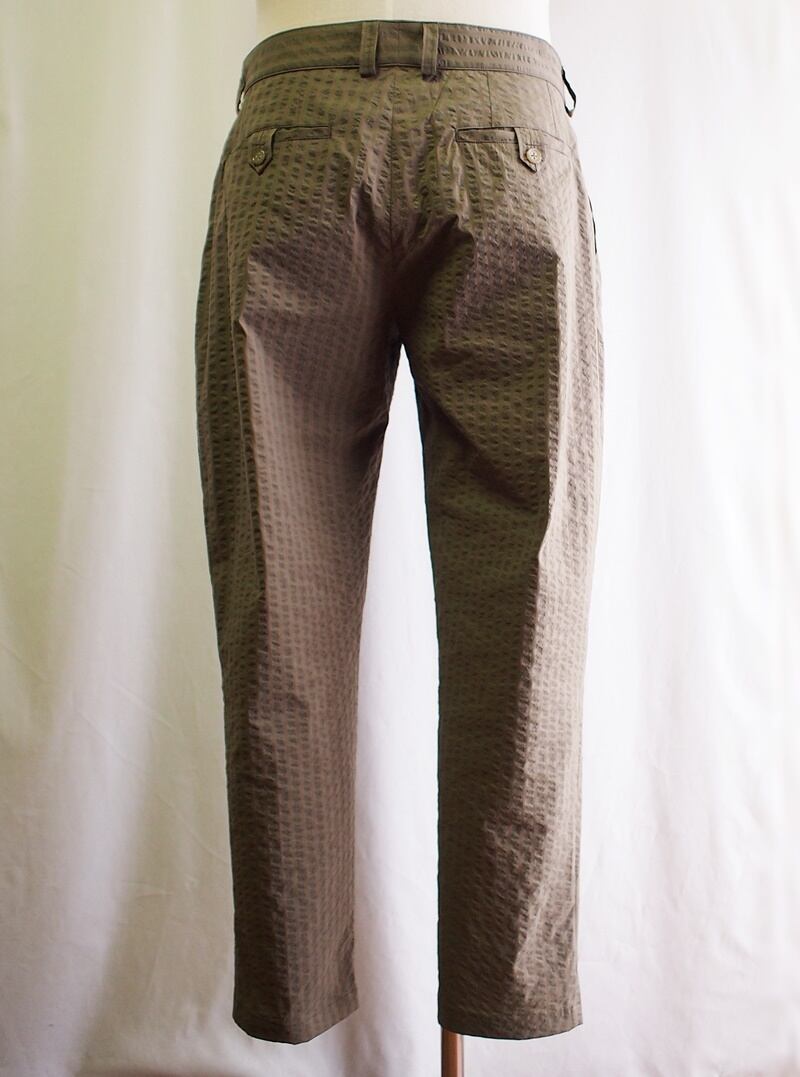 暑い夏に快適な穿き心地、クールマックスストレッチサッカーのシンプルなテーパードパンツです。