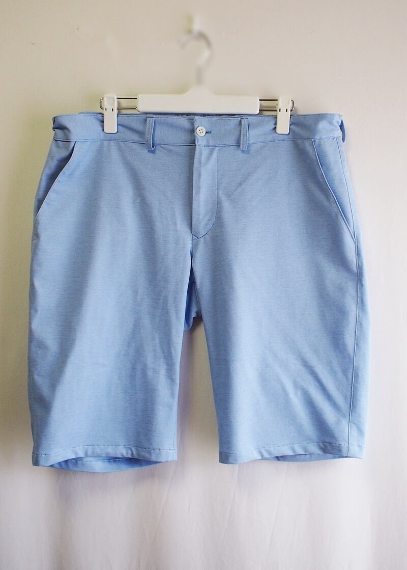 引き続き、明るいサックスブルーのジャージー素材でショートパンツ