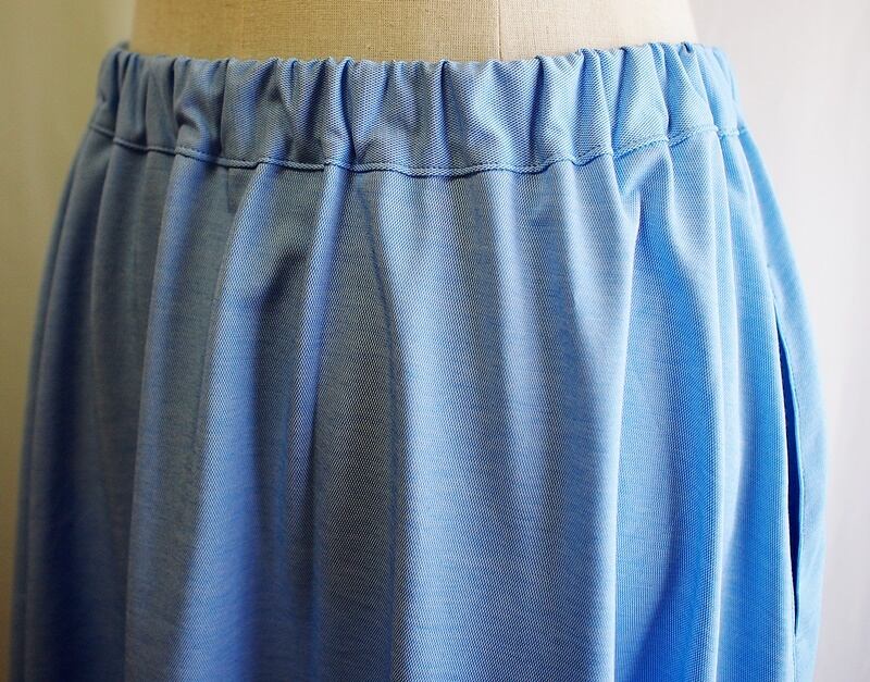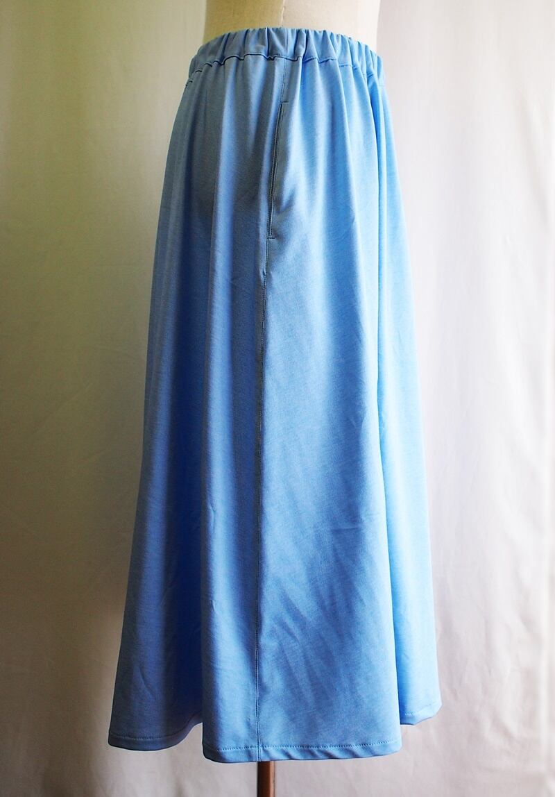 さらに引き続き、明るいサックスブルーのジャージー素材でイージースカート