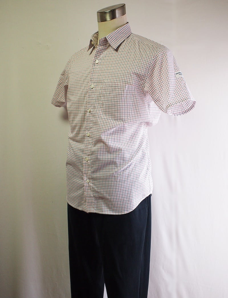 播州織(ばんしゅうおり)のタッタソールチェックで半袖のレギュラーカラーシャツ