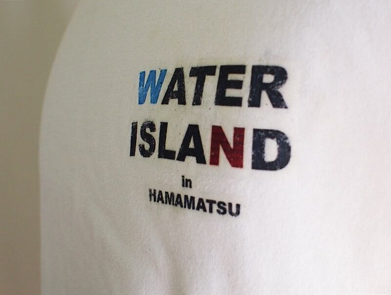 ロゴを部分的にWはライトブルー、Nがレッド、メインカラーはネイビー、「WATER ISLAND in HAMAMATSU」のロゴをトリコロールで少し擦れた感じの転写プリント