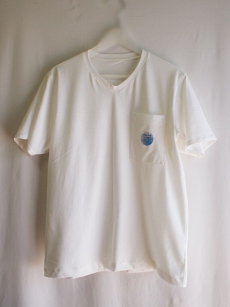 たった一つの…メンズ☆コットン☆40/-天竺☆WATERISLAND☆プリント☆Vネック☆ポケットT☆Lサイズ☆オフホワイト