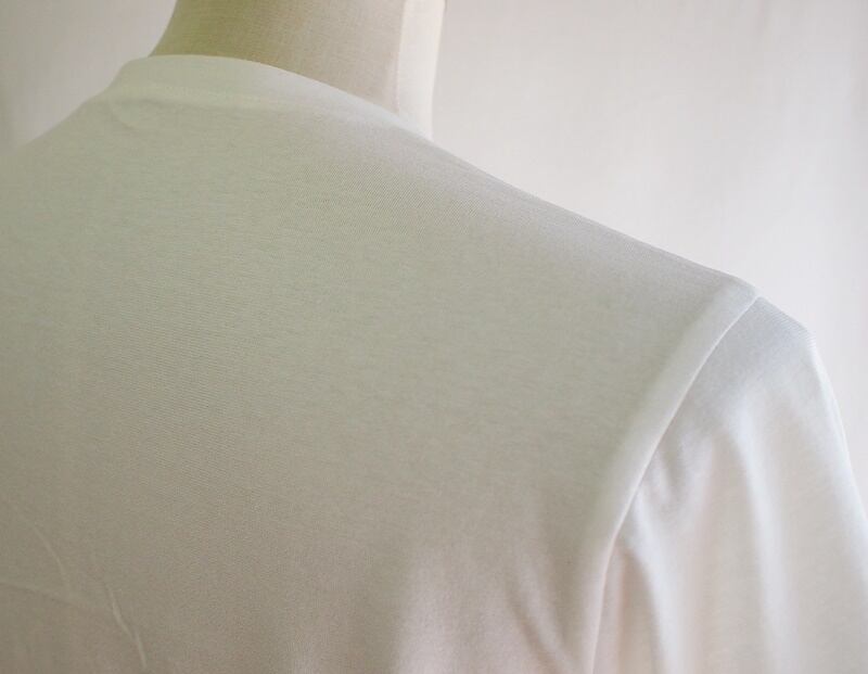 使用したのは綿100%のオーガニックコットン40/-天竺、色合いはオフホワイト