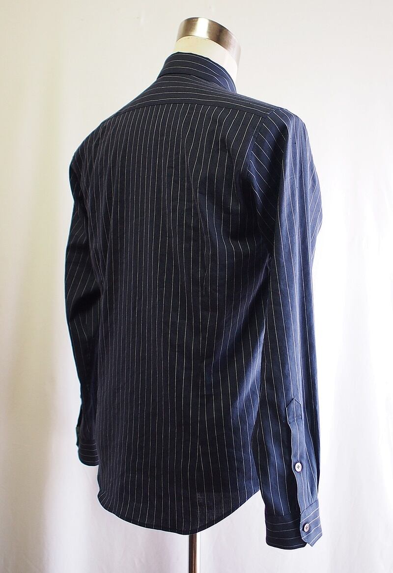 ネイビーのペンシルストライプでベーシックなレギュラーカラーシャツ