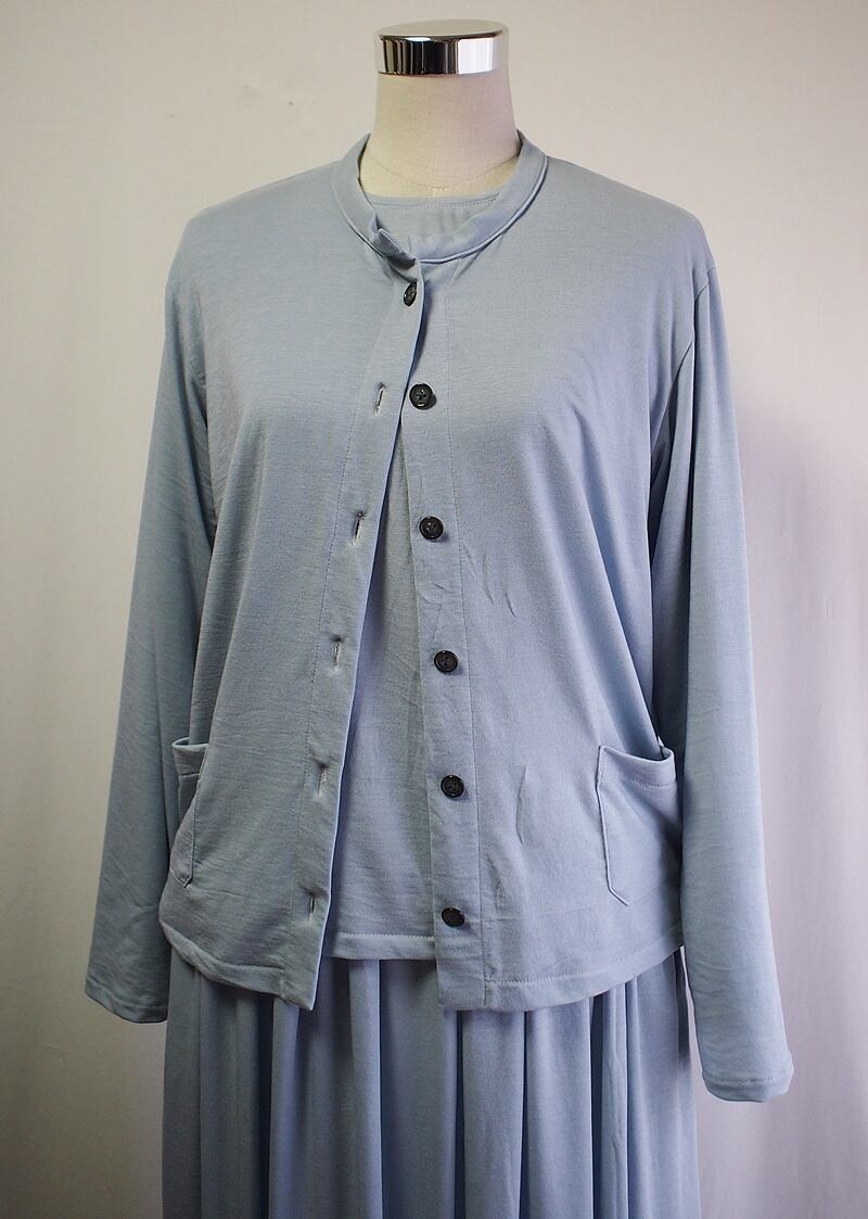 色合いはライトスモークブルー、グレイッシュなサックスブルーというイメージ