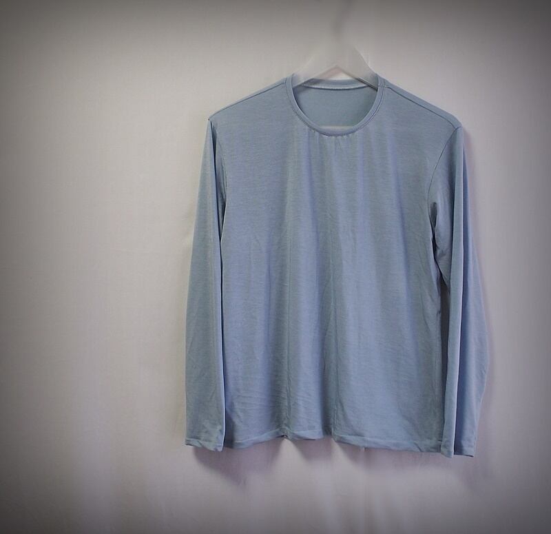 とても柔らかなジャージー素材でクルーネックの長袖Tシャツ