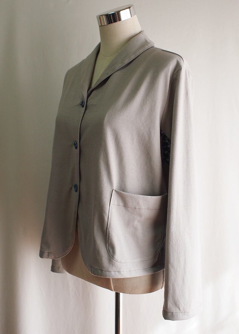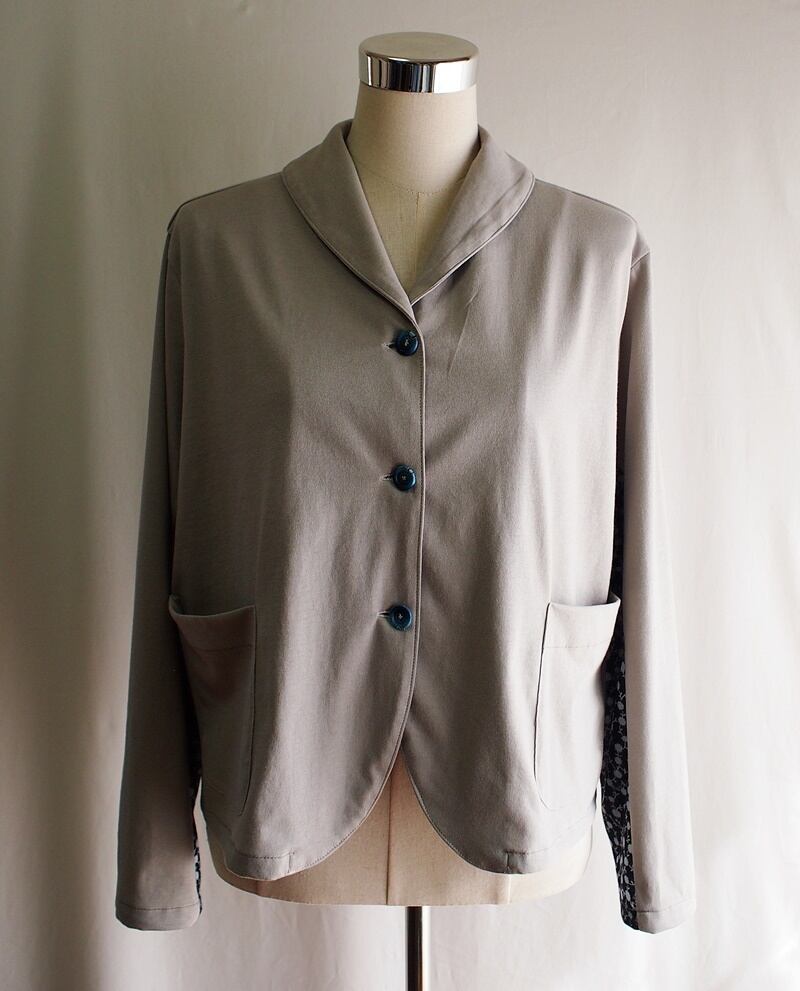 二つのジャージー素材を使ったバイカラーのショールカラージャケット