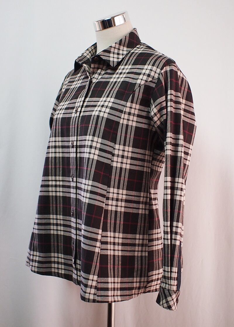 少し厚手のチェック生地、部分的にデニムを使ったパネルラインのオーバーブラウス