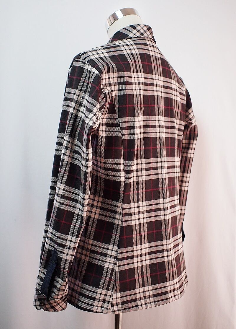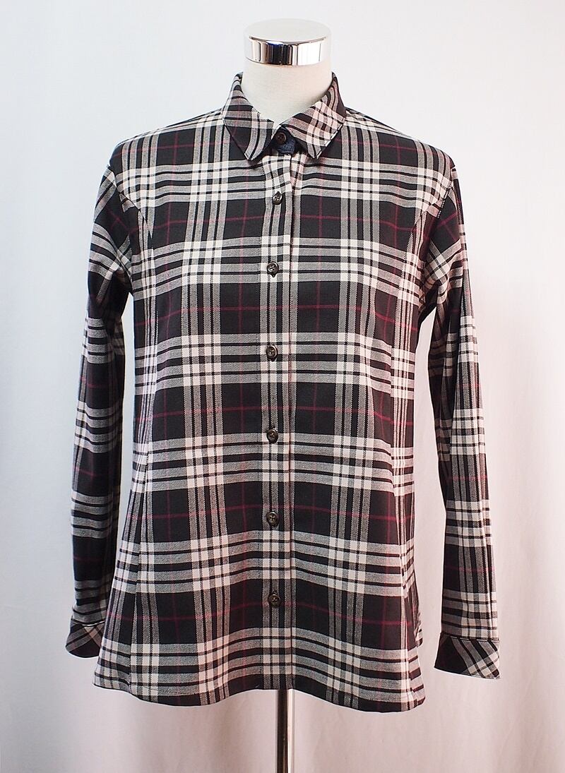 メインにはチェックのコットンツイルでやや起毛されたハリコシ感ある綾織り素材、焦げ茶と明るいベージュに赤いラインで構成されたチェック柄