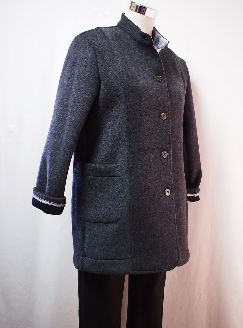 たった一つの…レディス ★ウール★ダブルフェイス★ソフトメルトン★スタンドカラーコート★トップチャコールグレー★フリーサイズ(11号)