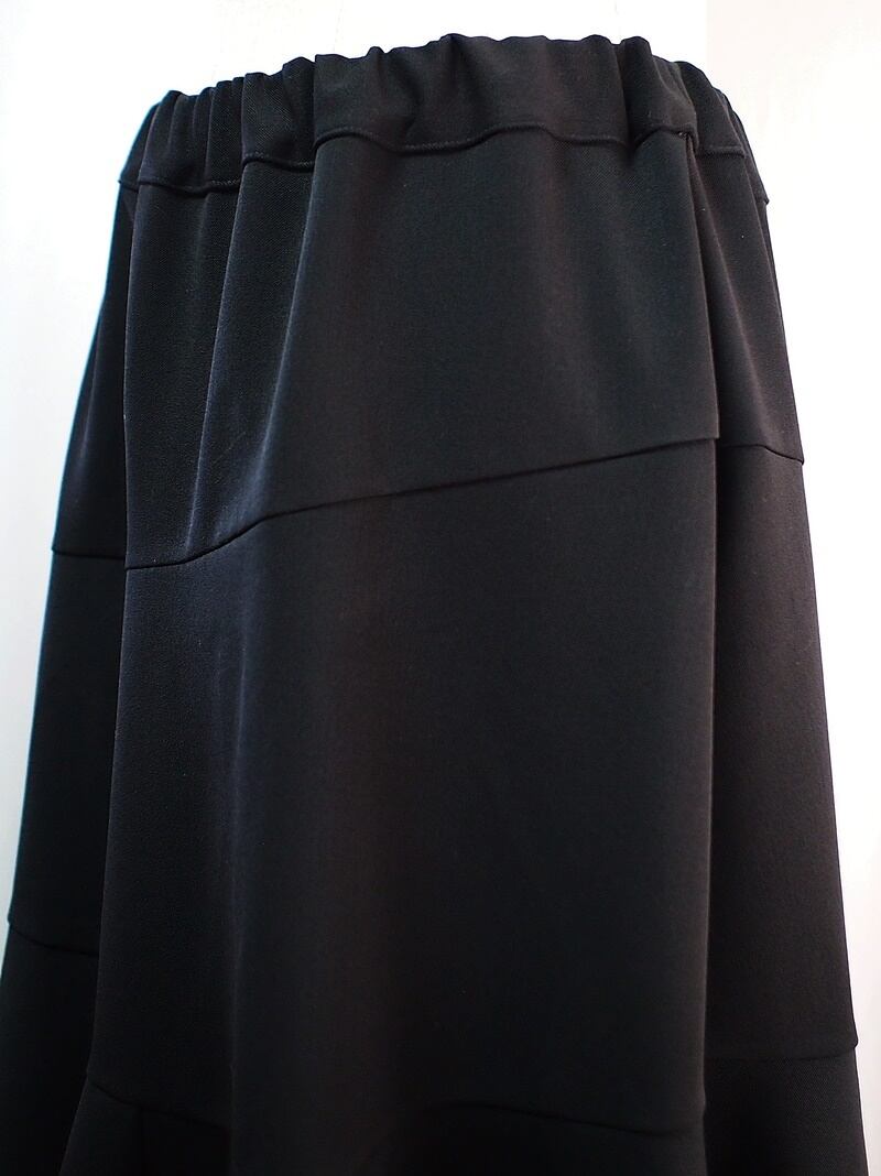 斜めにアシンメトリーなティアード切り替えの黒いイージースカート