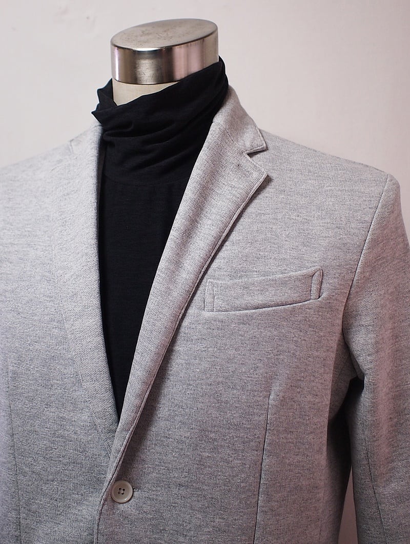 肩幅43㎝でナチュラルなショルダーライン、ややゆとりある袖幅で袖丈59.5㎝、袖口周り22㎝