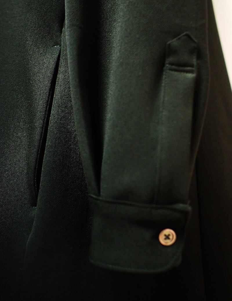 ボタンは全て黒蝶貝(直径11.5㎜)を使用、前中心8つボタン開きのパネルラインワンピース