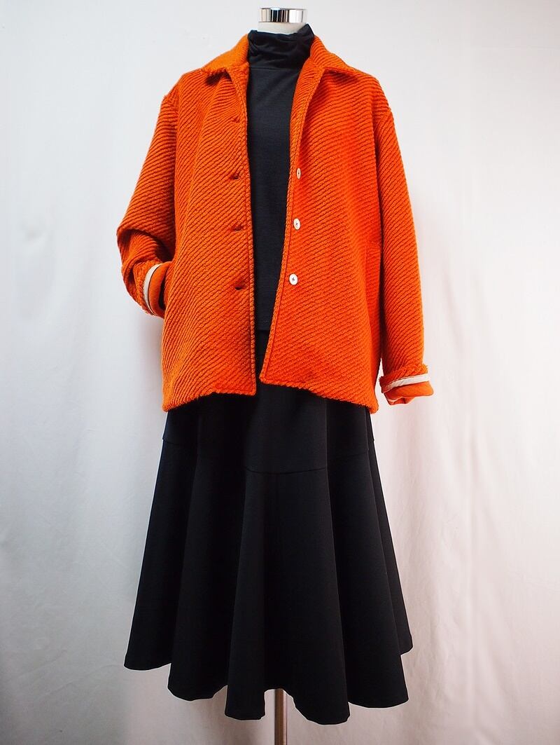 ウエストラインを目立たない程度に絞ったシルエット、一般的なレディスで11号くらいのサイズ感