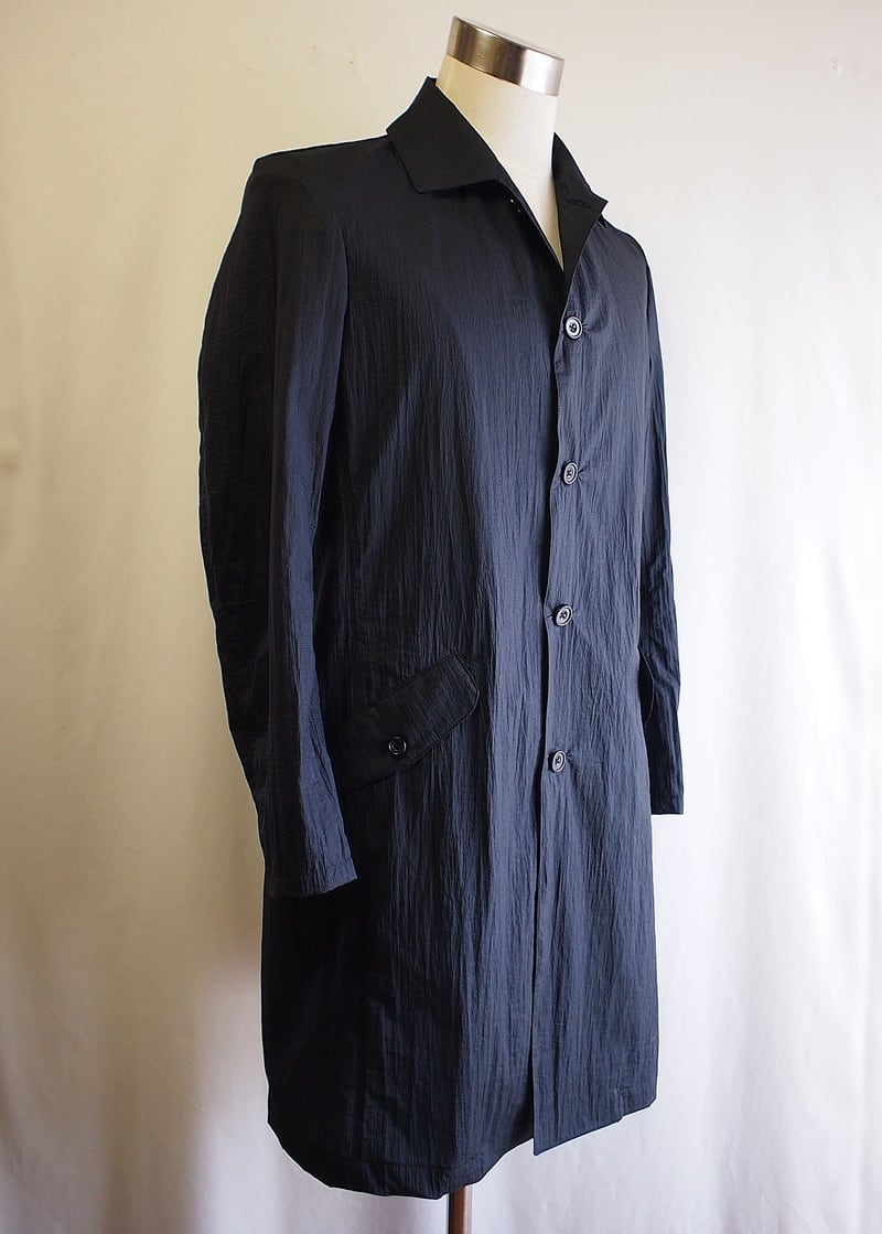 とても軽く薄いシワシワの素材で雨の日にも良いスプリングコート