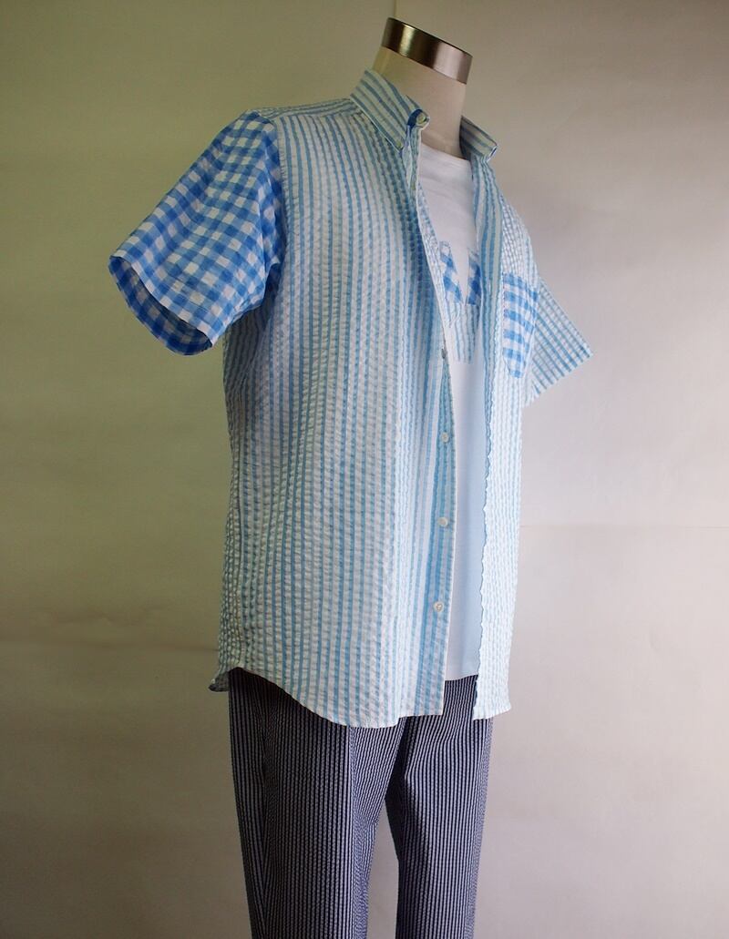 綿98%、ポリウレタン2%のストレッチシアサッカーは、横方向へのストレッチ性とサラサラとした凹凸感ある快適な素材