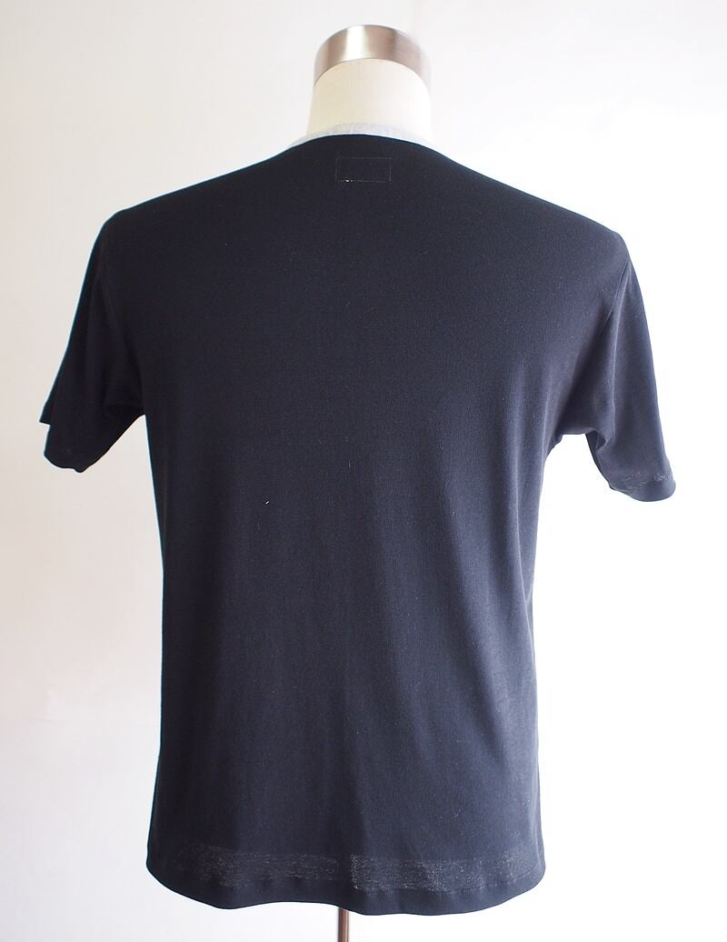 セール70%オフ!たった一つの…メンズ☆40/-フレスカフライス×C/Puストレッチ鹿の子☆WIロゴアップリケ☆クルーネックTシャツ☆Lサイズ☆ブラック×ライトグレー