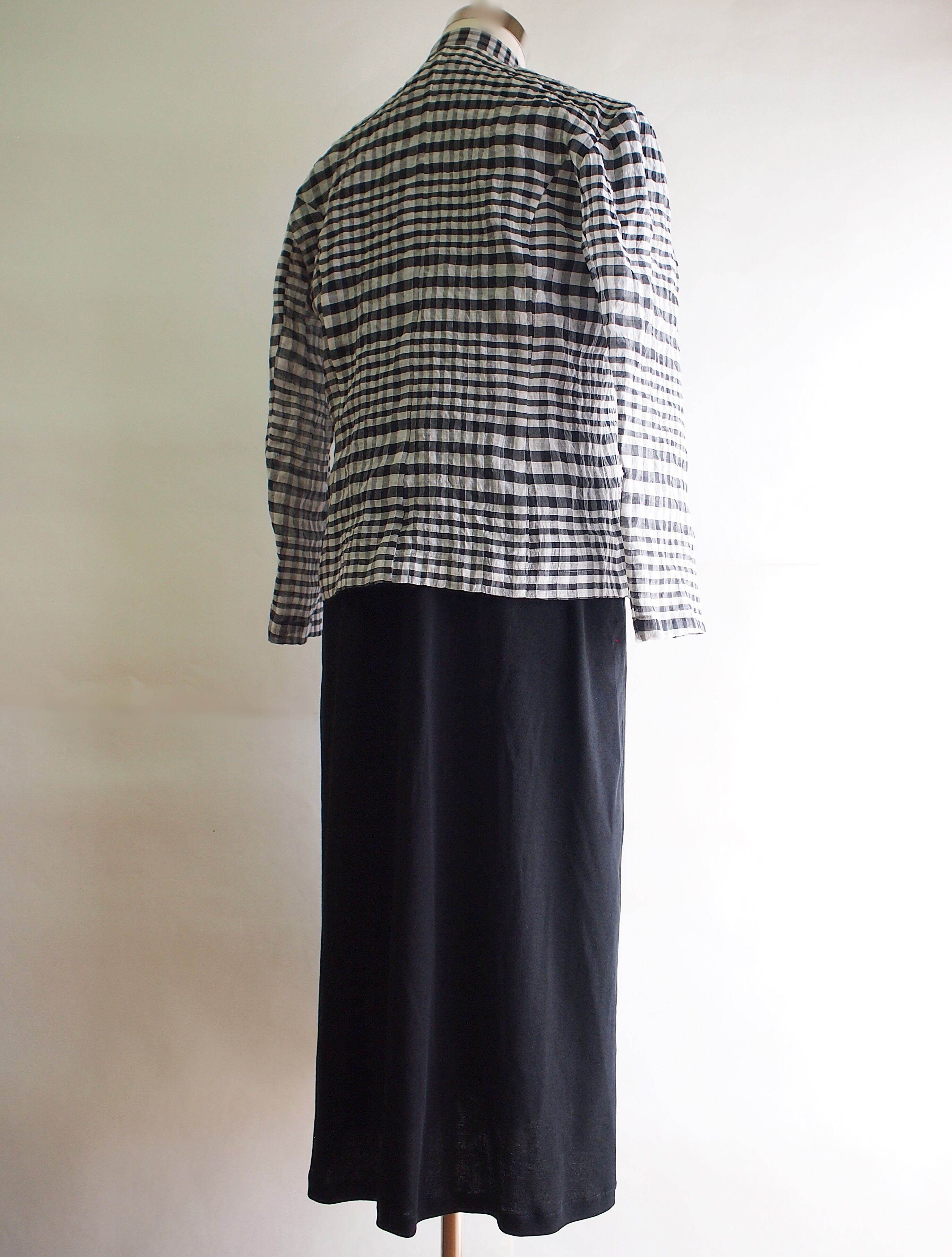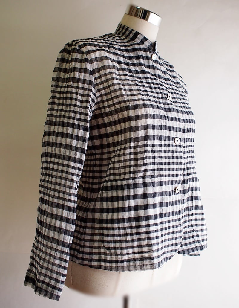 セール70%オフ!たった一つの…レディス★コットンボイル★パッカリングチェック★マオカラージャケット★ホワイト×ブラック★フリーサイズ