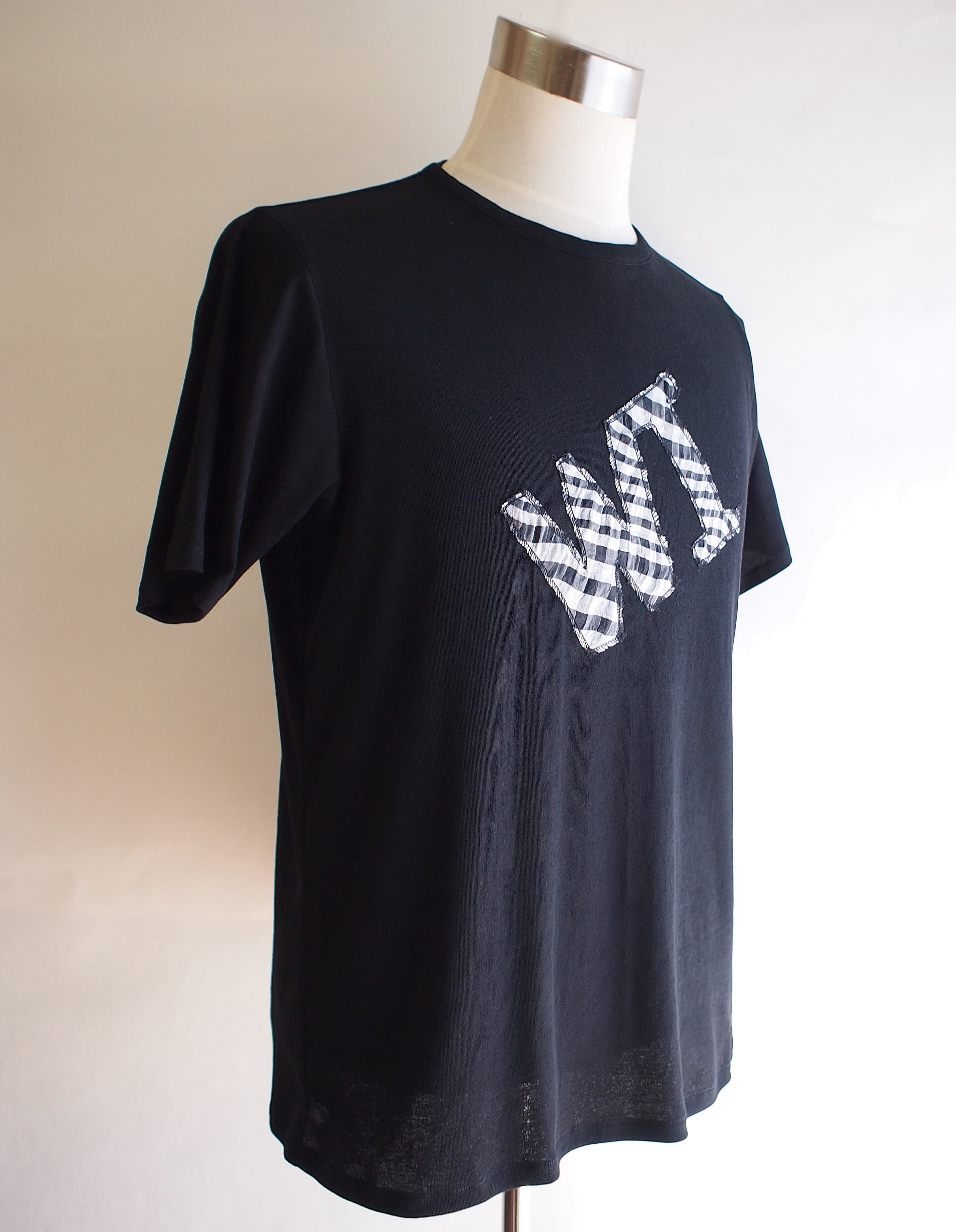 セール60%オフ!たった一つの…メンズ☆40/-フレスカフライス×パッカリングチェック☆WIロゴアップリケ☆クルーネックTシャツ☆Lサイズ☆ブラック