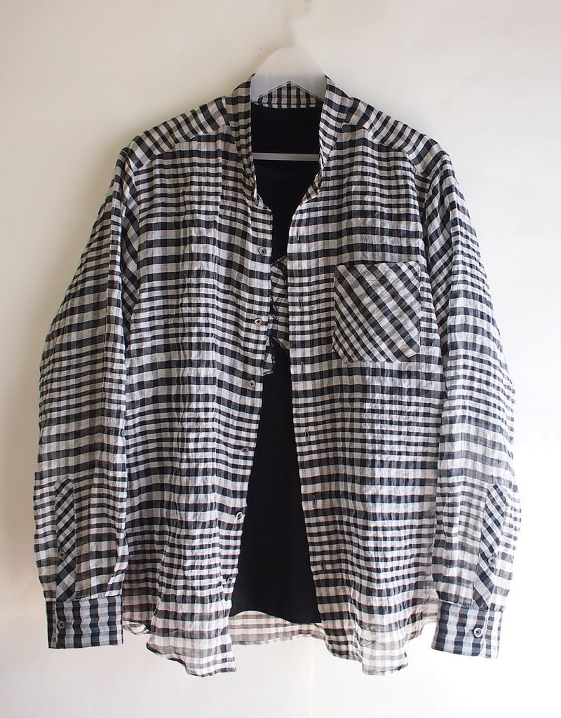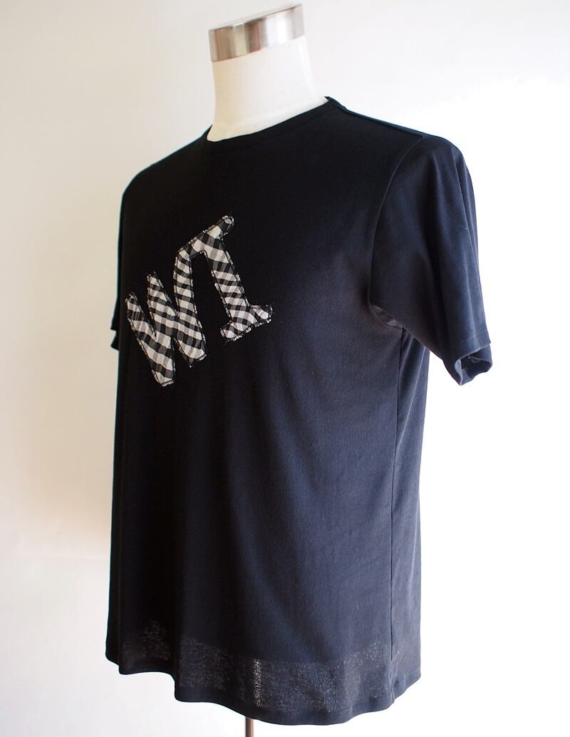 サラサラのジャージー素材でモノトーンチェックWIロゴアップリケのクルーネックTシャツ