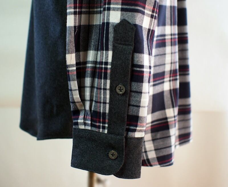 メインに使用している生地はとても柔らかな風合いの綾織り素材で先染めチェックのコットンツイル