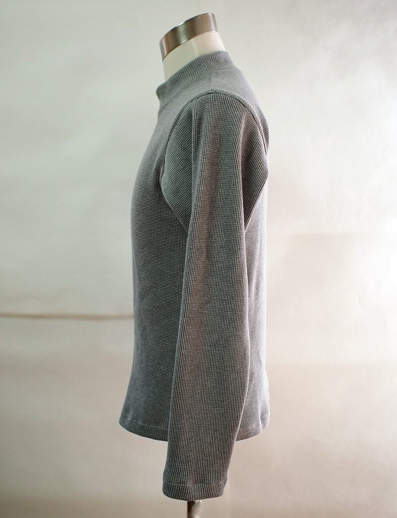 お菓子のワッフルのような凹凸がオシャレな雰囲気、シンプルなハイネックのロングスリーブTシャツです。