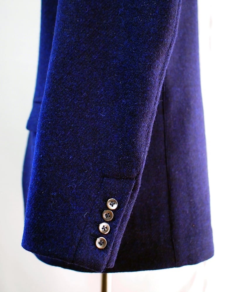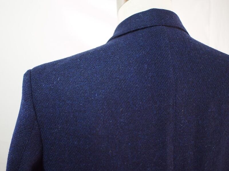 冬の伝統的な存在感ある無地のハリスツイード使ったテーラードジャケットです。