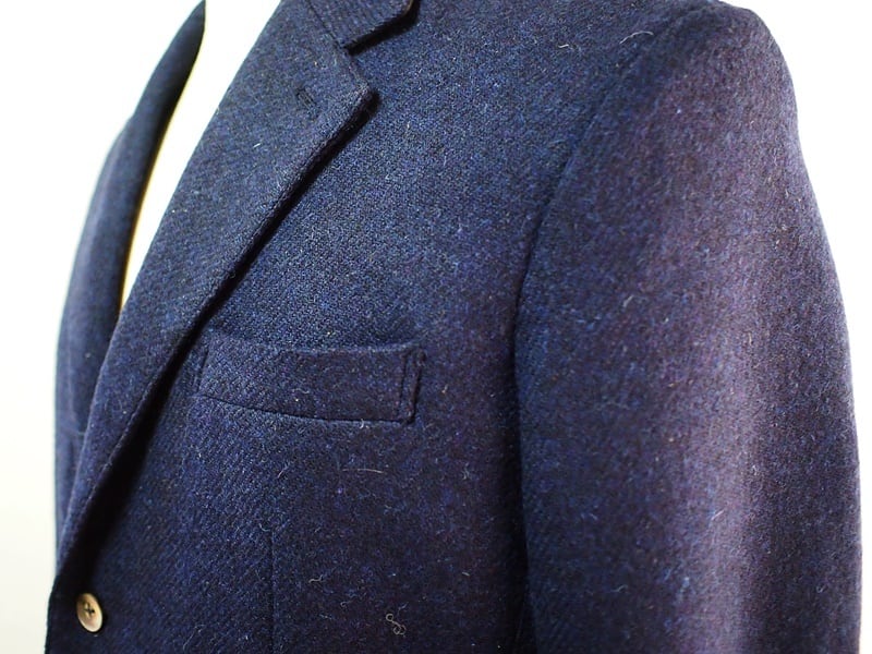 ネイビーの濃淡と明るいブルーのネップが効いた毛100%の糸で織られた誰もが知ってるハリスツイード
