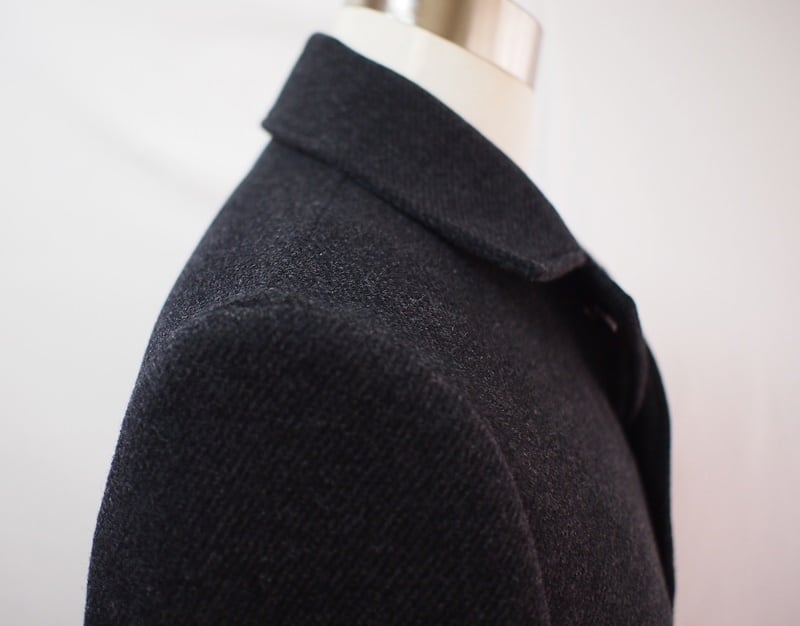 カシミヤ混ツイルビーバーは上品で高級感、第1ボタンは外してマフラーなどするのがイイ感じです。