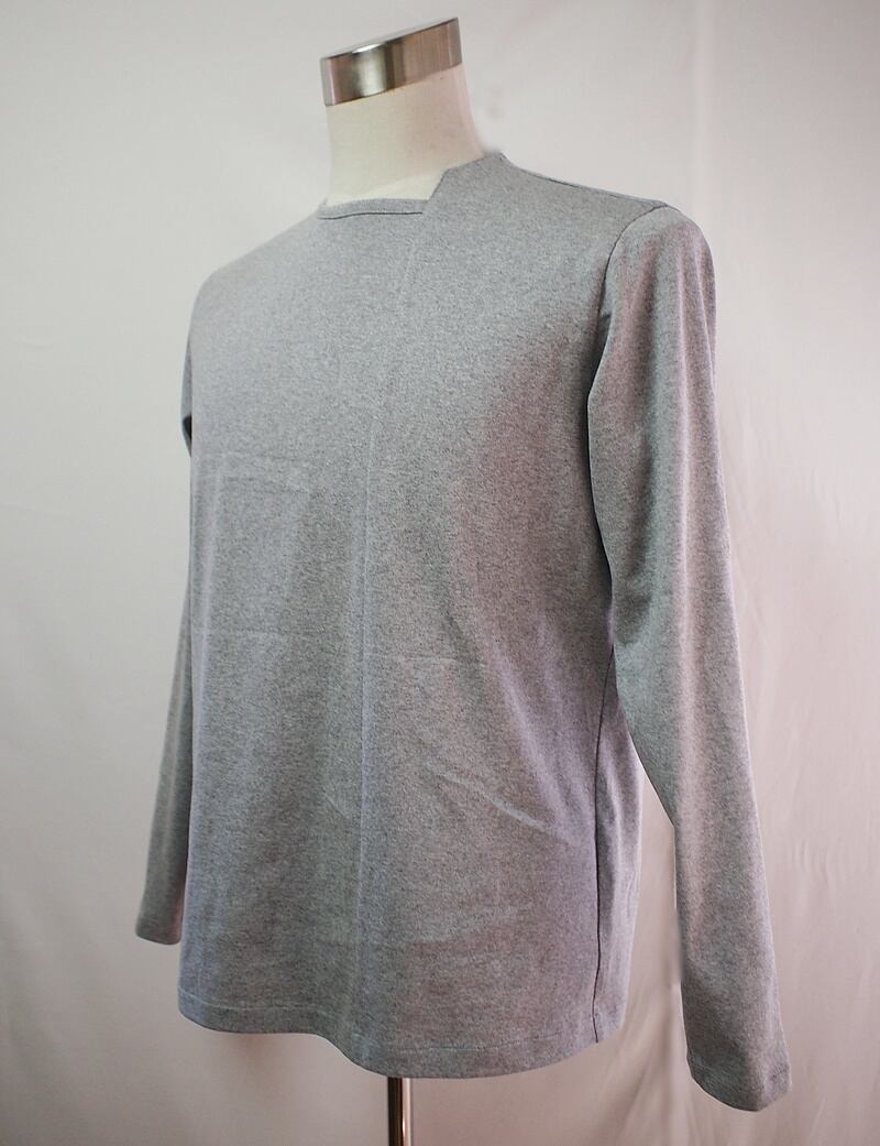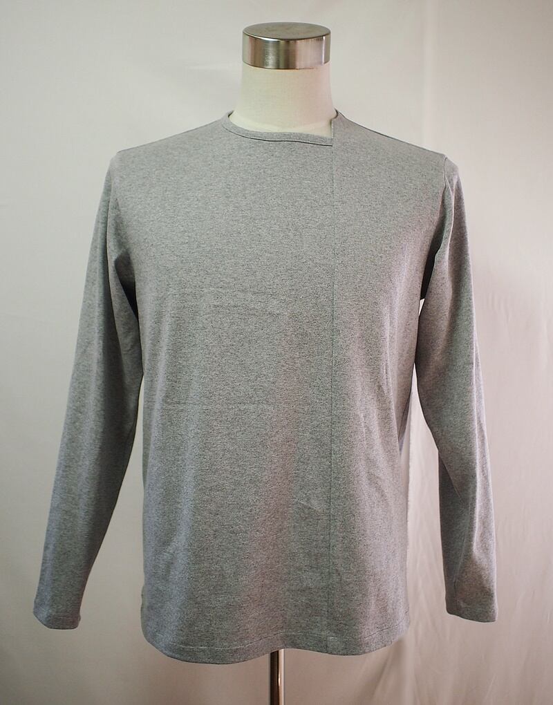 セール75%オフ!たった一つの…メンズ☆14-チャンピオン天竺☆アシンメトリーネックライン☆ロングスリーブ☆Tシャツ☆LLサイズ☆トップグレー
