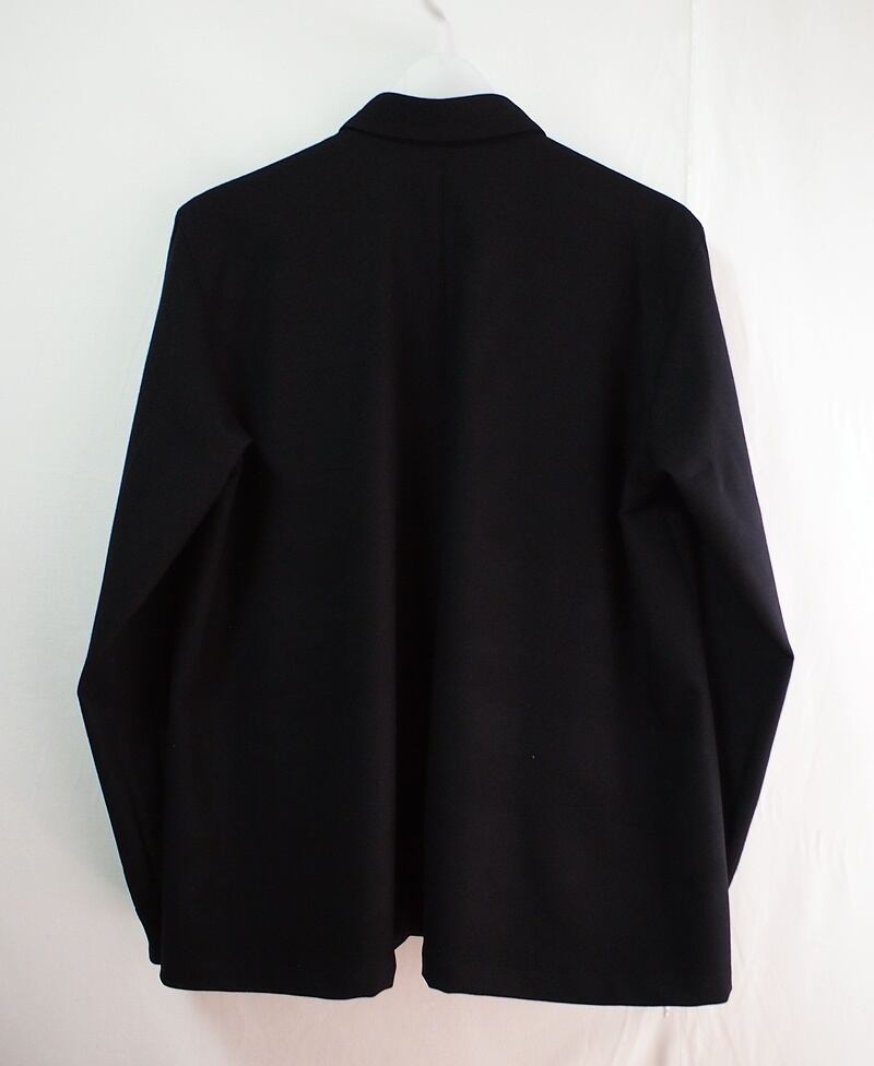 肩先が自然に落ちるシャツのような袖付け、袖口ワンタックのスッキリした袖幅、カフス開きの剣ボロは短めでボタン無しです