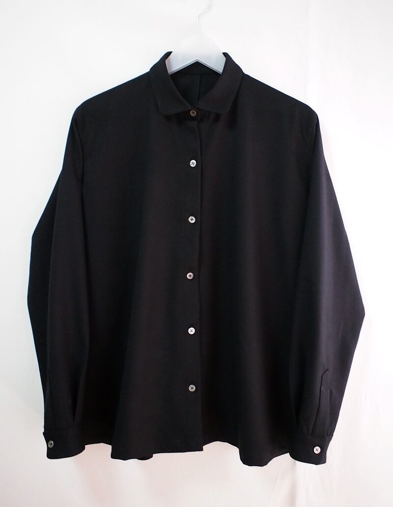 柔らかくて落着きあるストレッチウールでミニラウンドカラーのフレアーオーバーブラウス