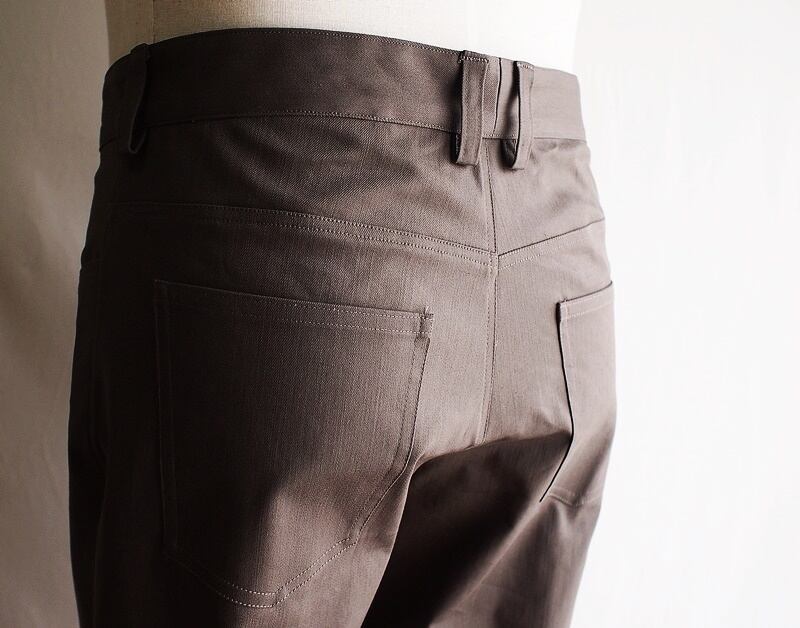 春におすすめな生地で作った気楽に穿けるライダースっぽい5ポケットパンツ