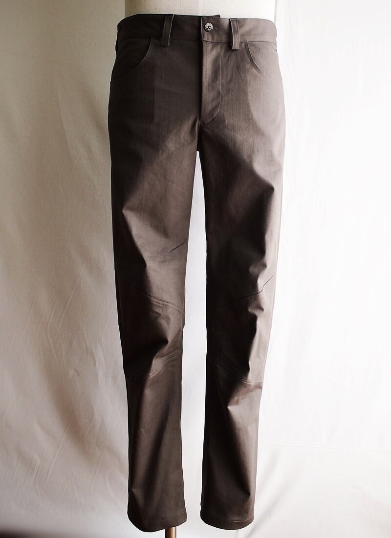 軽く肌ざわり良くストレッチ性でストレスフリーな、あくまでも普段使いにちょっとオシャレで気軽に穿ける「ライダースっぽい5ポケットパンツ」です。