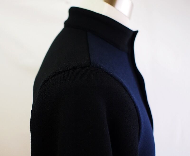 後身頃はネイビーがメインで肩ヨークはブラック、衿から真っ黒が続きます