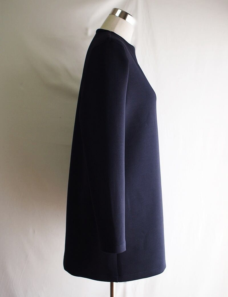 ダンボールニットを使用したアシンメトリーネックのプルオーバーチュニック