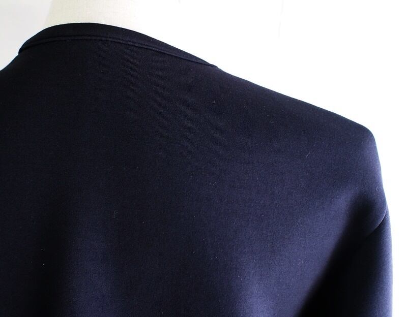 肩幅44㎝でナチュラルに落ちるショルダーへ袖付け、身幅50㎝、裄丈は約79㎝で程よいゆとりを入れてます