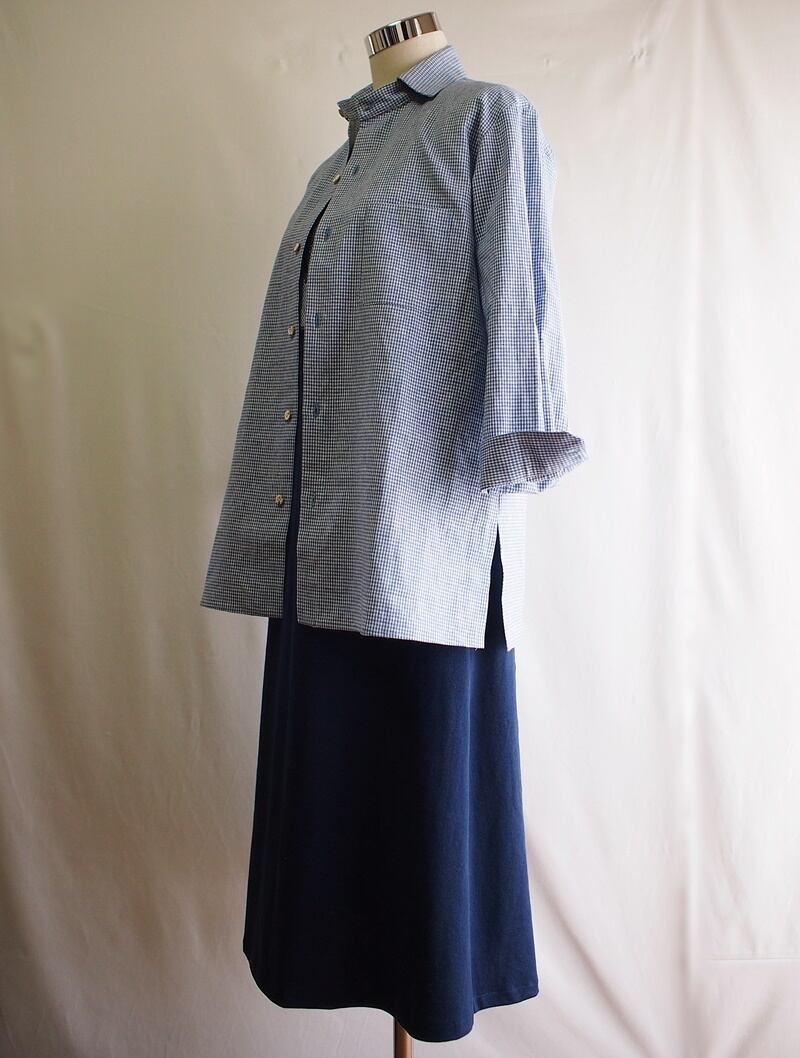 後から見るとギンガムチェックのシンプルなオーバーブラウス、初夏の気楽な羽織りとしてもおススメです。